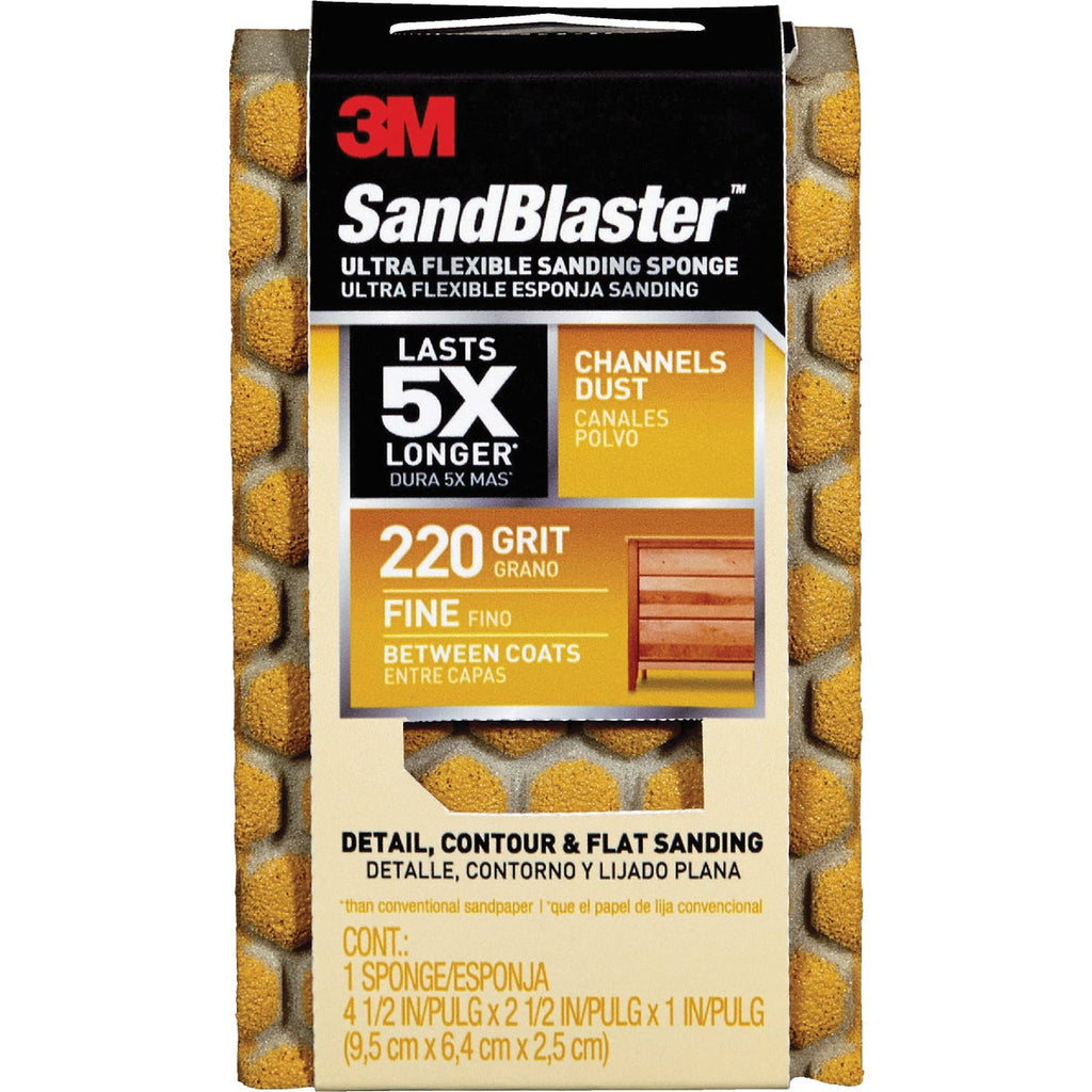 3M SandBlaster 2-1/2 In. x 4-1/2 In. x 1 In. Ultra Flexible Fine Sanding Sponge, Gold, 220 Grit