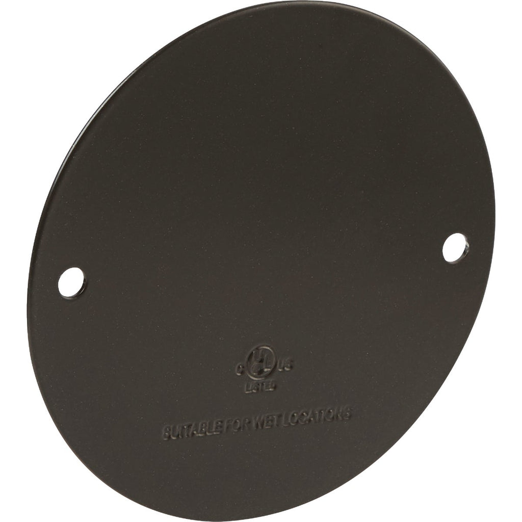 Bell Single Gang Round Die-Cast Metal Bronze Blank Outdoor Box Cover, Shrink Wrapped