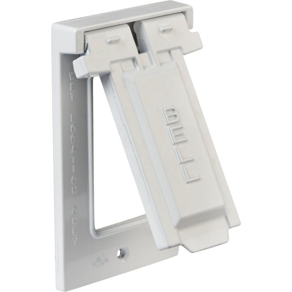Bell Single Gang Vertical Mount Die-Cast Metal White Weatherproof GFCI Outdoor Outlet Cover