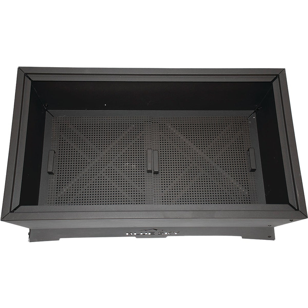 38-inch rectangle smokeless patio fire pit. A conversation-sized fire pit, designed for friends and family to easily gather around. It has a newly engineered, patent pending design that offers a highly efficient smokeless burn by improving airflow through the fire pit and drawing oxygen into the fire. It features dual lift-out ash catches, accessible from the fire pits top, to simplify clean up. A wider bezel on top of the fire pit promotes a more efficient smokeless burn for you and your guests to enjoy. The innovative fire pit design burns firewood and/or wood pellets, generating a significant amount of heat for a great backyard bonfire with little to no smoke or embers. The tongue and groove design makes it easy to secure the sides together and assemble in ten minutes or less. The rectangular shape and large burn chamber allows you to load more standard length firewood for a better, longer burn.