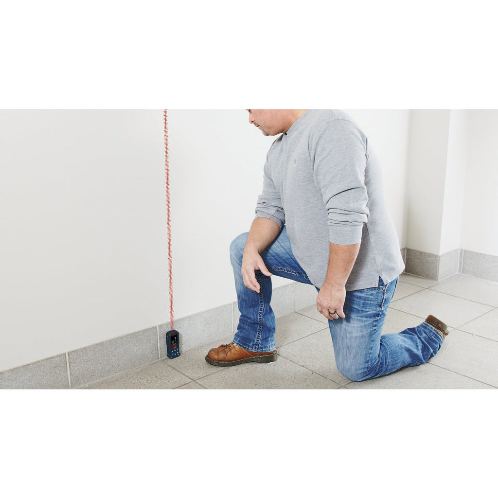 This 165 Ft. laser measure is a fully featured tool with an easy-to-read color display, great accuracy, an inclinometer for tilt angle and reinforced housing for durability. The Bosch BLAZE GLM165-27C features an inclinometer, which shows the tilt angle up to 360 for easy angle and indirect measurements. The laser has accuracy up to 1/16 In., plus it includes a rounding button that rounds the measurement to the fraction that best suits the application and haptic feedback for loud jobsites. The digital laser measure also offers Bluetooth functionality, so users can digitally transfer measurements to a smartphone or tablet through the free MeasureOn app. It also has full rubber overmold housing, designed to be similar to a roll cage. It is IP65 rated and has an ergonomic design for better grip. It includes 11 different measuring functions, including real-time length, length, area, volume and indirect functions, and addition/subtraction capability.
