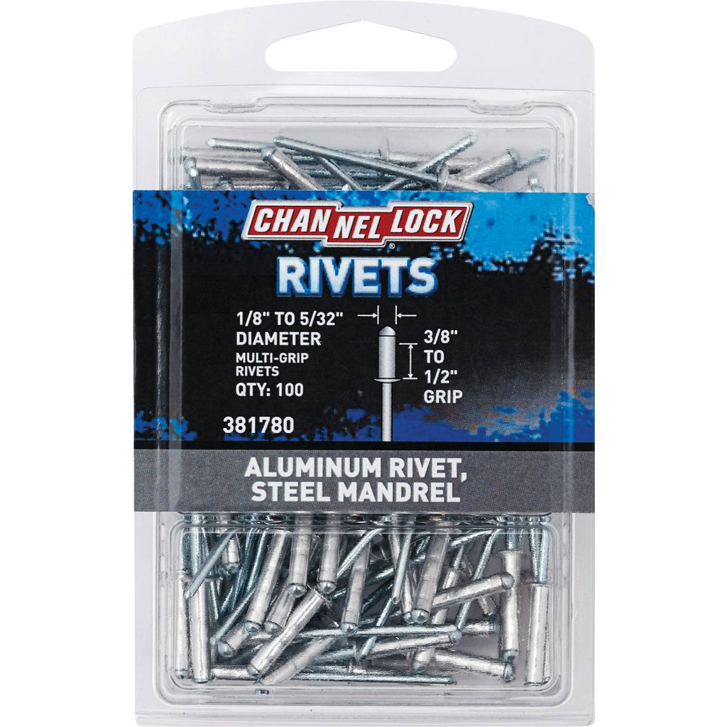 Channellock 1/8 In. to 5/32 In. Dia. x 0.251 In. to 0.437 In. Grip Aluminum Multigrip POP Rivet (100-Pack)