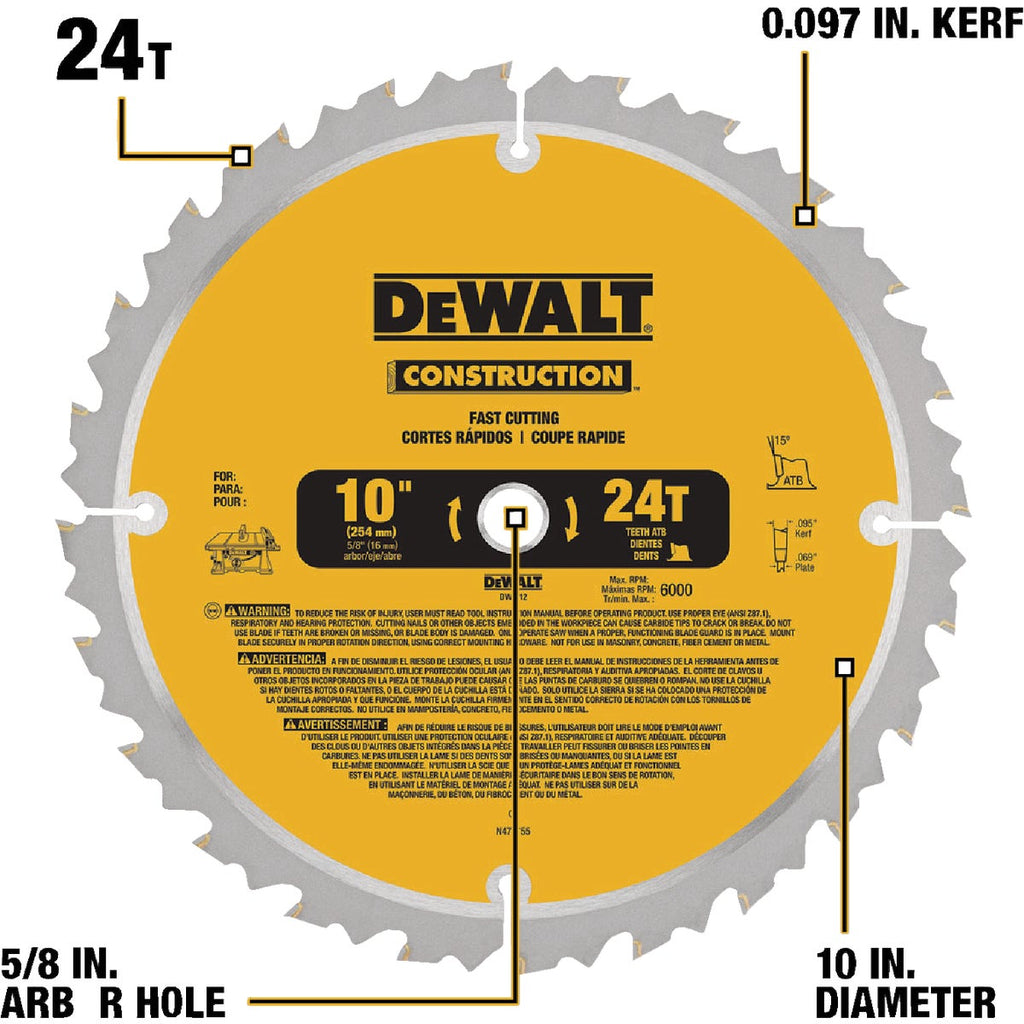 DEWALT 10 In. 24-Tooth Circular Saw Blade
