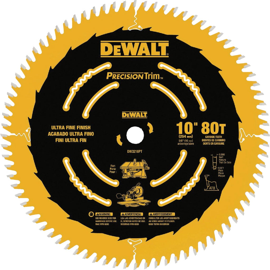 DEWALT Saw Blades are ideal for any wood-cutting application. The exclusive, patent-pending ToughTrack tooth design, on our framing and ripping blades, is engineered to deliver straight, accurate cuts over the life of the blade. Patented Body Slots reduce vibration, which works with the blade's thin kerf design to deliver exceptional user feel. High-Density Tungsten Carbide teeth are tough, wear-resistant, and provide long life. The reinforced shoulder is designed for strength and durability by providing impact resistance, especially in nail-embedded wood. These blades come with ToughCoat anti-stick coating to reduce friction and gumming. Optimized for use on both corded and cordless circular saws.