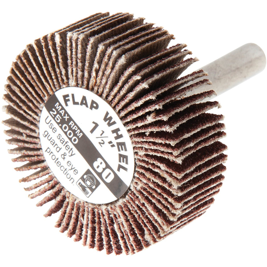 Forney 1-1/2 In. x 1/4 In. 80 Grit Shank Mounted Flap Sanding Wheel