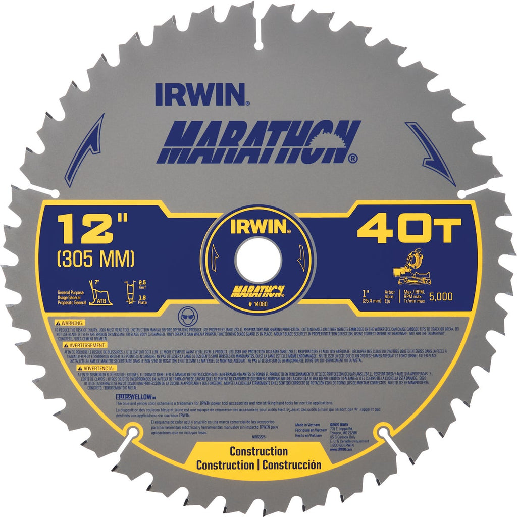 Irwin Marathon 12 In. 40-Tooth General Purpose Circular Saw Blade