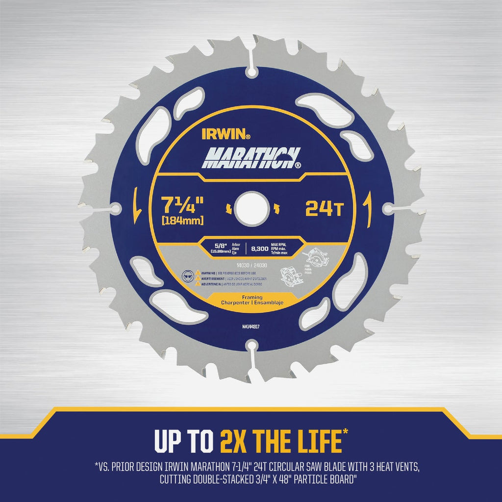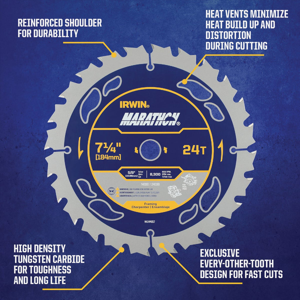 Irwin Marathon 7-1/4 In. 24-Tooth Framing/Ripping Circular Saw Blade