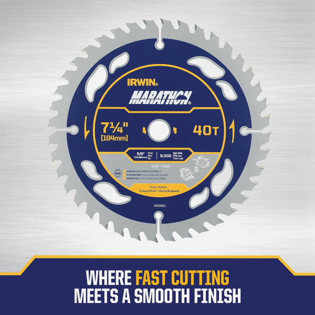 Irwin Marathon 7-1/4 In. 40-Tooth Trim/Finish Circular Saw Blade