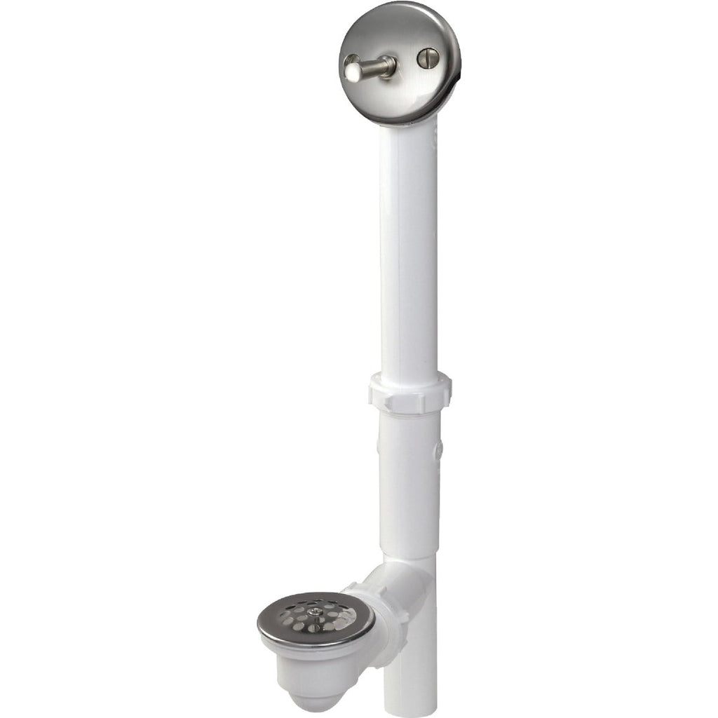Keeney White Plastic Trip Lever Bath Drain with Brushed Nickel Trim and Strainer & Dome Grid