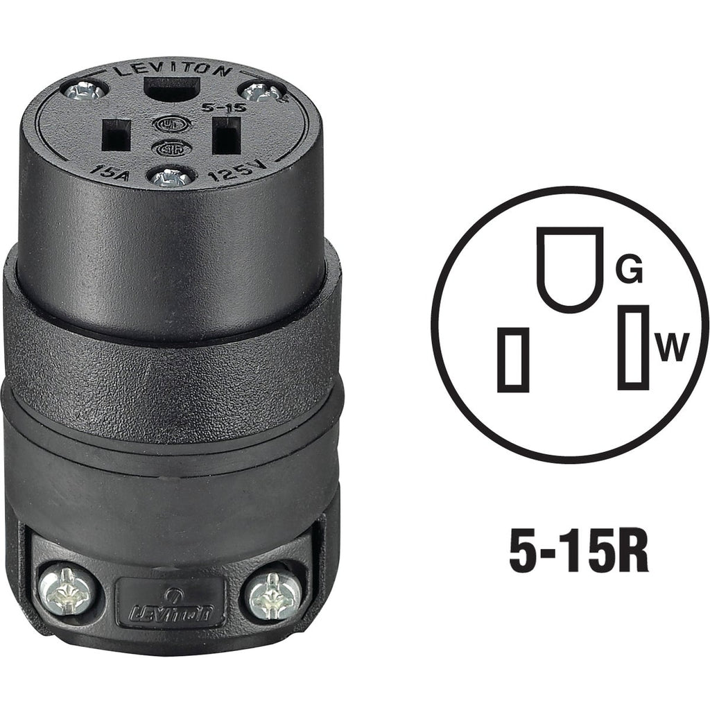 Leviton 15A 125V 3-Wire 2-Pole Rough Use Cord Connector