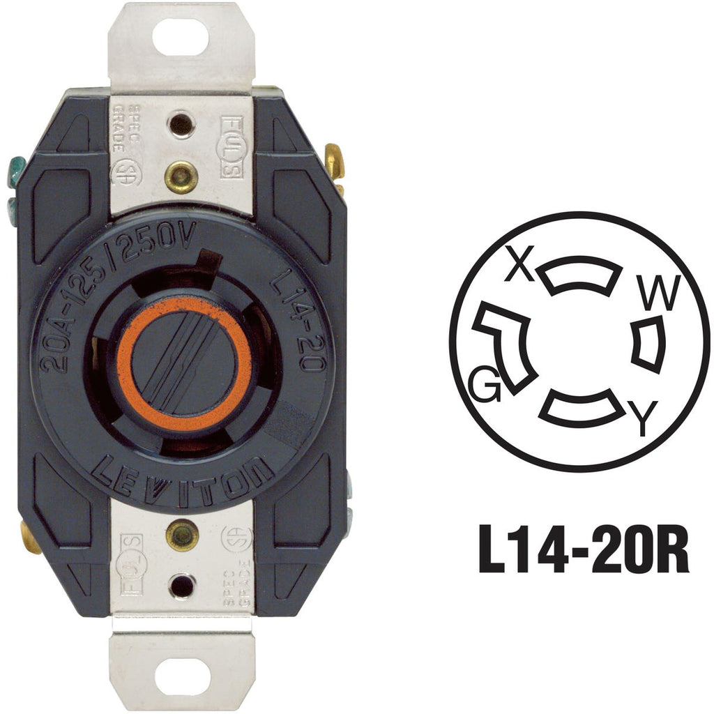 Leviton 20A 125V/250V Black Industrial Grade L14-20R Locking Outlet Receptacle