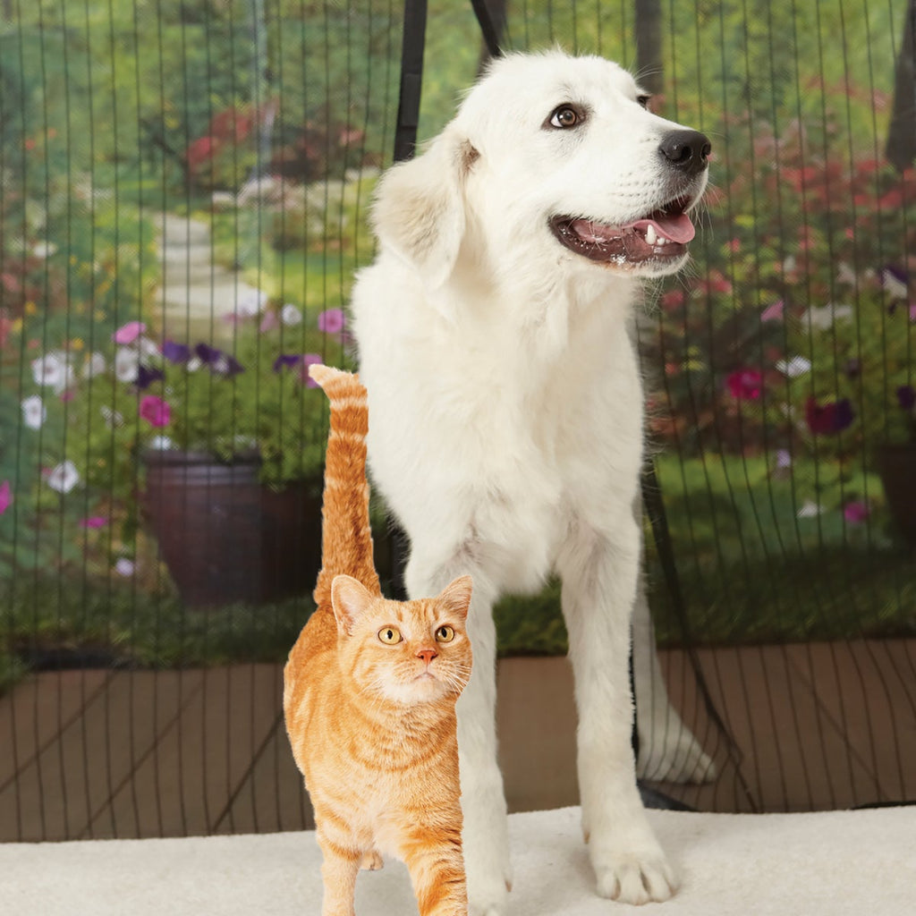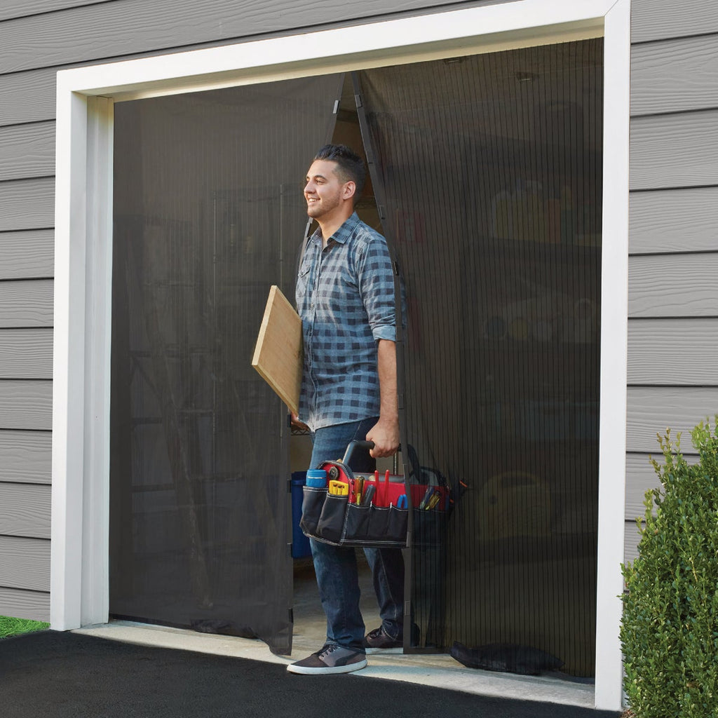 Magic Mesh Garage Hands-Free Screen Door opens then closes itself behind you, allowing you to walk easily through even when your hands are full. Heavy duty mesh with weighted bottom. Magic Mesh can be used as a replacement for a fixed screen door and fits front, rear, interior or exterior, entry, patio, deck, porch, balcony, glass, garage, and even sliding doors. No tools are required. Includes all you need to install: (1) 84.5 In. W. x 109 In. H. x 1 In. D. Mesh Panel, (9) Hook & Loop Strips and (25) Wood Tacks. Magic Mesh now has one panel installation, simply peel the adhesive backing off the hook and loop strips and apply to door frame.