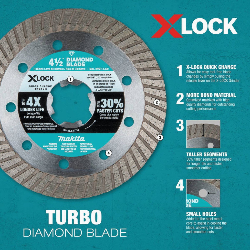 Makita X-LOCK 4-1/2 In. Turbo Rim Dry/Wet Cut Diamond Blade (2-Pack)