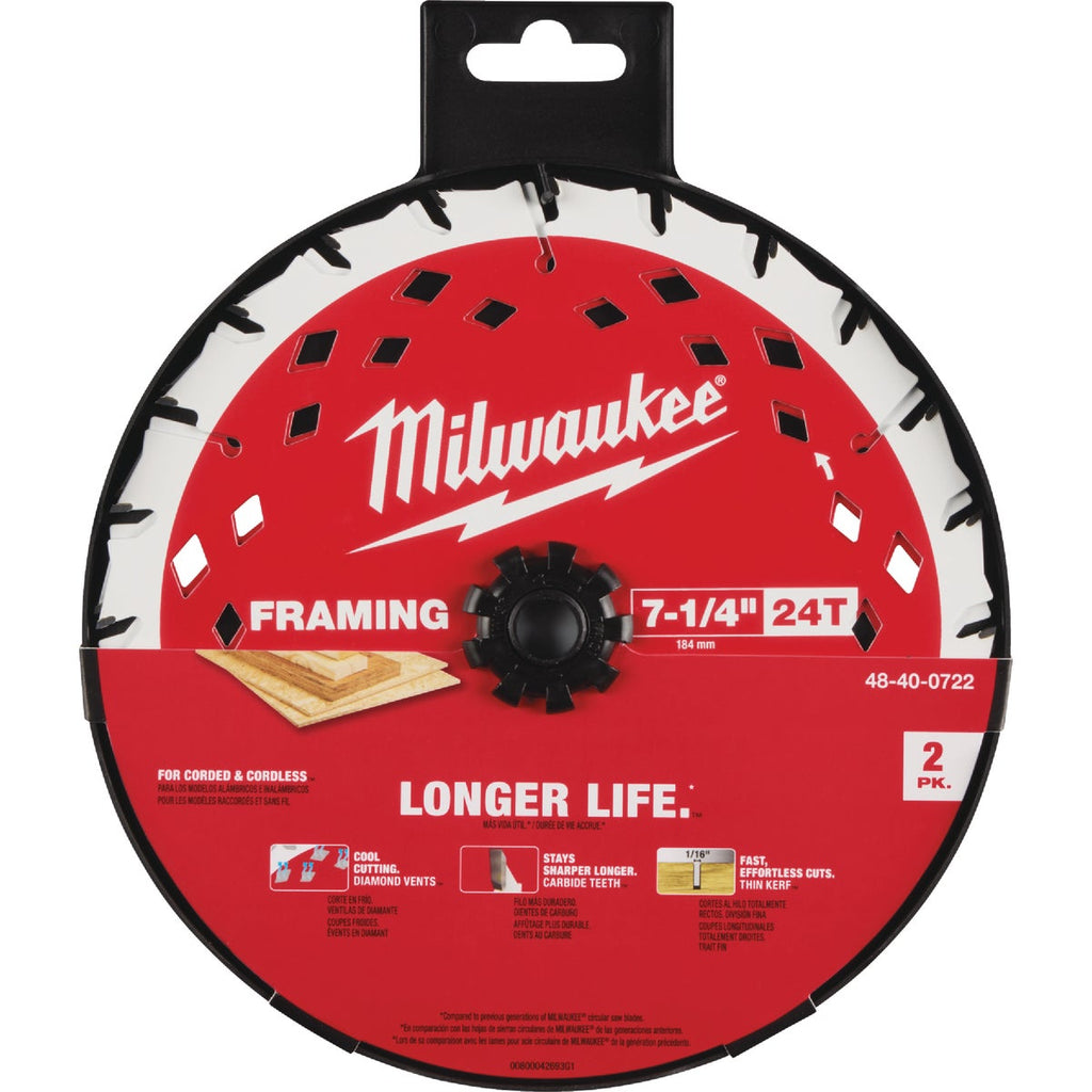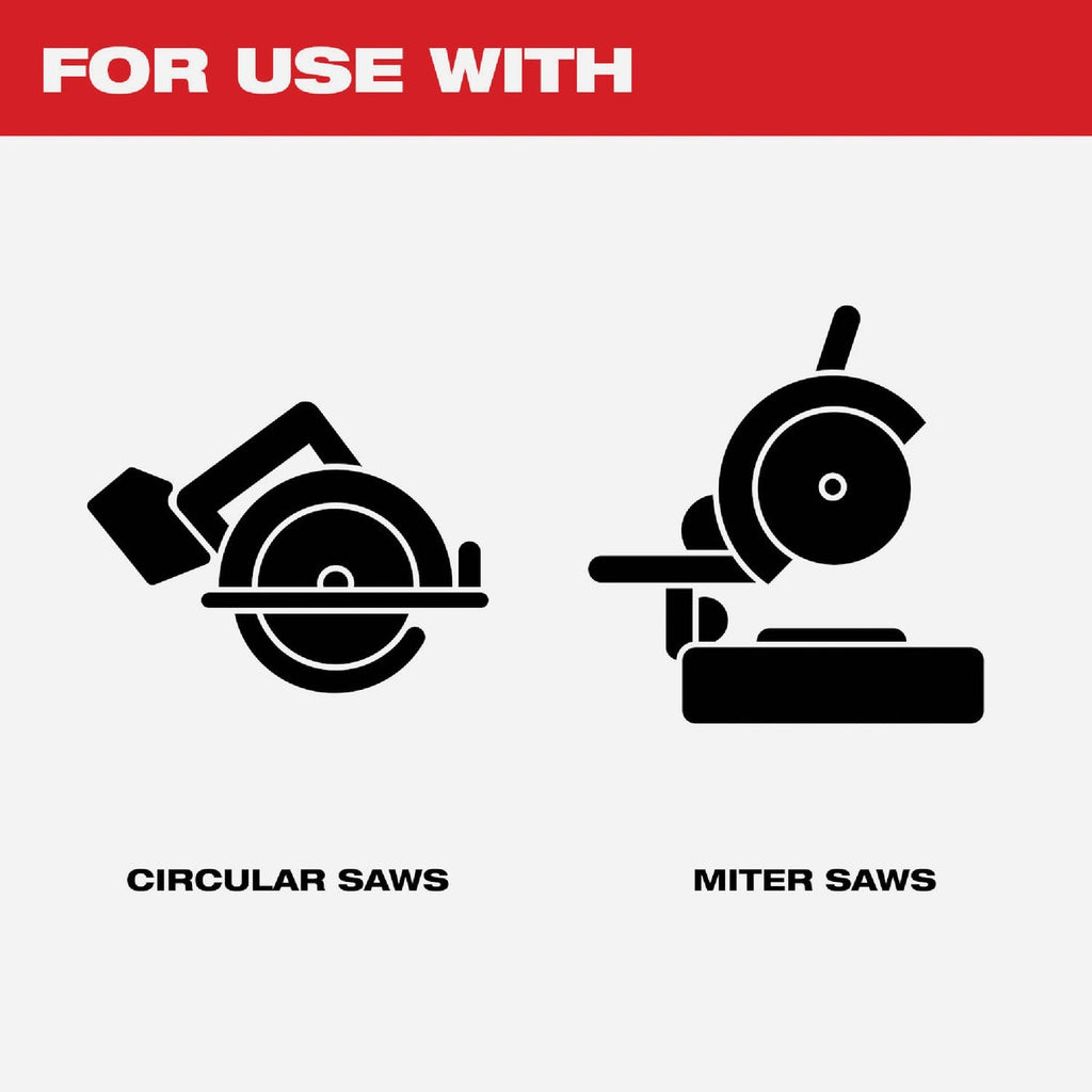 Milwaukee's wood cutting framing blades maximize life and cutting efficiencies to improve your productivity. An anti-friction coating keeps the blade cool while cutting and resists corrosion & gumming. Laser cutting technology creates the blade from 100% sheet steel to ensure a stable blade that increases cutting accuracy. Laser cut vibration slots minimize wobble and warping during use. A thin kerf design delivers faster cuts as well as more cuts per charge when using a cordless tool. Optimized for both corded and cordless tools. Great for use with softwoods, hardwoods, wet lumber, treated lumber and laminated woods such as plywood, OSB, LVL, PSL, LSL & OSL.