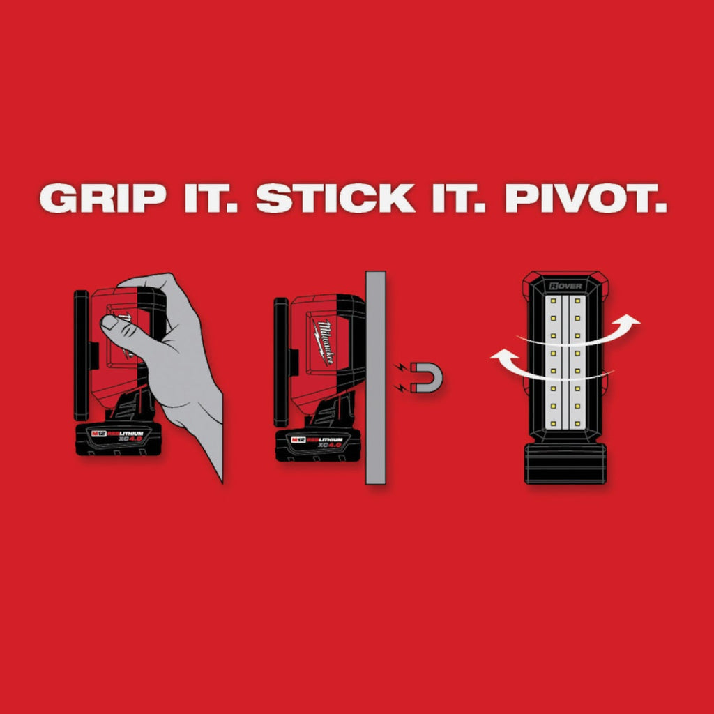 The Milwaukee M12 ROVER Service & Repair Flood Light w/USB (universal serial bus) charging provides a flexible light source made for any environment, in any orientation. The light provides 700 lumens of TRUEVIEW High Definition Output, is capable of lighting up a workspace for up to 24 hours at a time with an M12 XC4.0 Ah Battery Pack, and features a light head that pivots 110 Deg. to orient the light in multiple directions. The light comes equipped with a strong rear-facing magnet made for jobsite surfaces like steel studs, I-Beams, and job boxes. The light's streamlined base offers a handheld option for inspection lighting. A 2.1 Amp USB port is included with the cordless rechargeable LED (light emitting diode) floodlight for charging a phone or external device. The ROVER Flood Light features an integrated keyhole for hanging capability on non-metallic surfaces. This compact pivoting floodlight has an IP54 rating for dust and water resistance, has an impact-resistant lens protecting the LEDs, and can survive up to 9 Ft. drops. Tool Only - battery and charger not included.