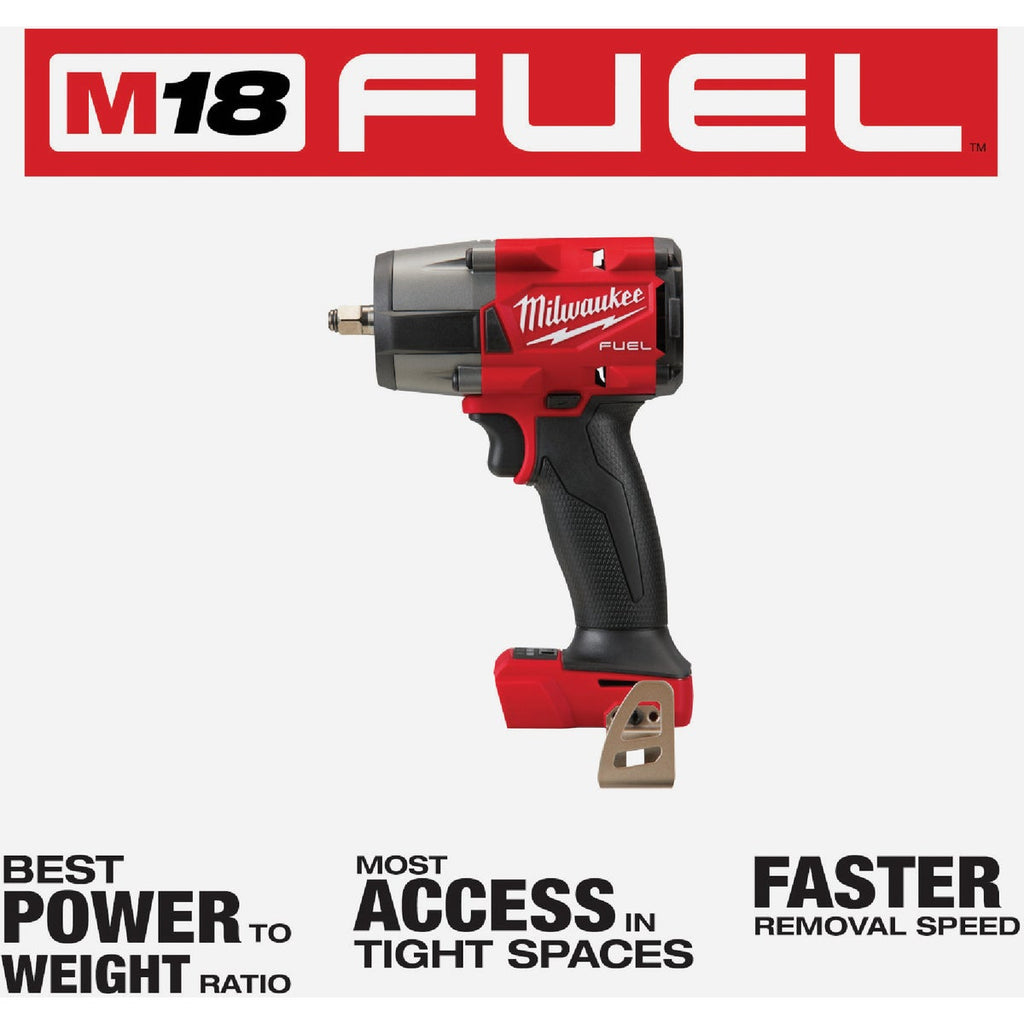 The Milwaukee M18 FUEL 3/8 In. Mid-Torque Impact Wrench w/Friction Ring offers the most access in tight spaces and a faster removal speed. POWERSTATE Brushless Motor provides 600 Ft./Lb. of nut-busting torque while weighing less than high torque impact wrenches. 4-Mode Drive Control provides greater control over output speed and power. Includes auto shut-off and bolt-removal mode. Tri-LEDs deliver high definition lighting to increase workspace visibility with less shadow. Auto Shut-Off control applies no more than 35 Ft./Lb. of torque for hand-tight fastening applications to prevent overtightening. REDLINK PLUS Intelligence ensures maximum performance and protects from overloads, heating and over-discharge. Removes rusted bolts and lug nuts quickly for increased productivity. Tool Only - battery and charger not included.