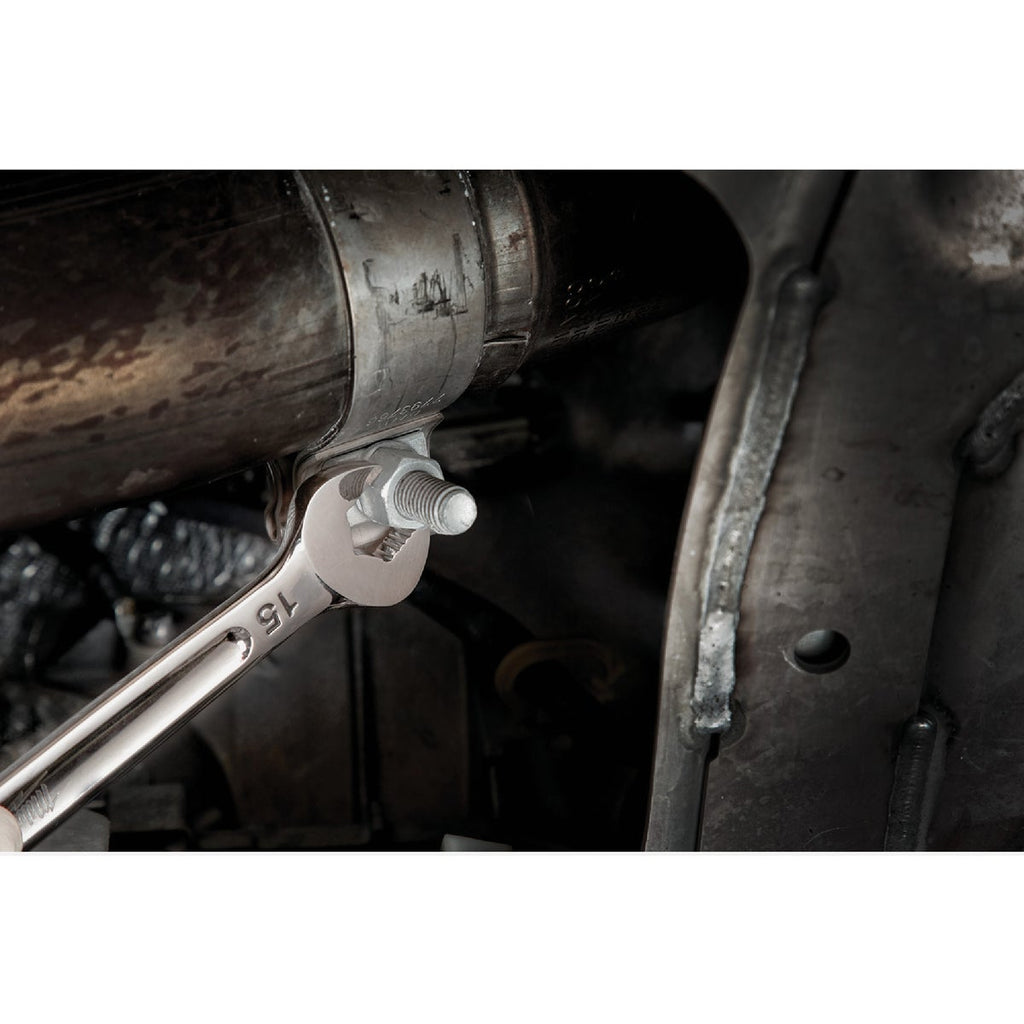 Milwaukee has designed the combination wrenches from the ground up, delivering maximum torque and ultimate user comfort. The MAX BITE open-end grip improves the wrench's grip on nuts and bolts, and the geometry reduces rounding and stripping. The comfortable I-Beam handle design allows superior user comfort even while applying high torque. Milwaukee wrenches feature ink-filled size labels for easy size identification and quick distinction between SAE and metric sets. The 15-piece kit comes in a storage tray designed for long-term storage keeping your tool chest organized. Includes 1 each: 8 mm, 9 mm, 10 mm, 11 mm, 12 mm, 13 mm, 14 mm, 15 mm, 16 mm, 17 mm, 18 mm, 19 mm, 20 mm, 21 mm, 22 mm.