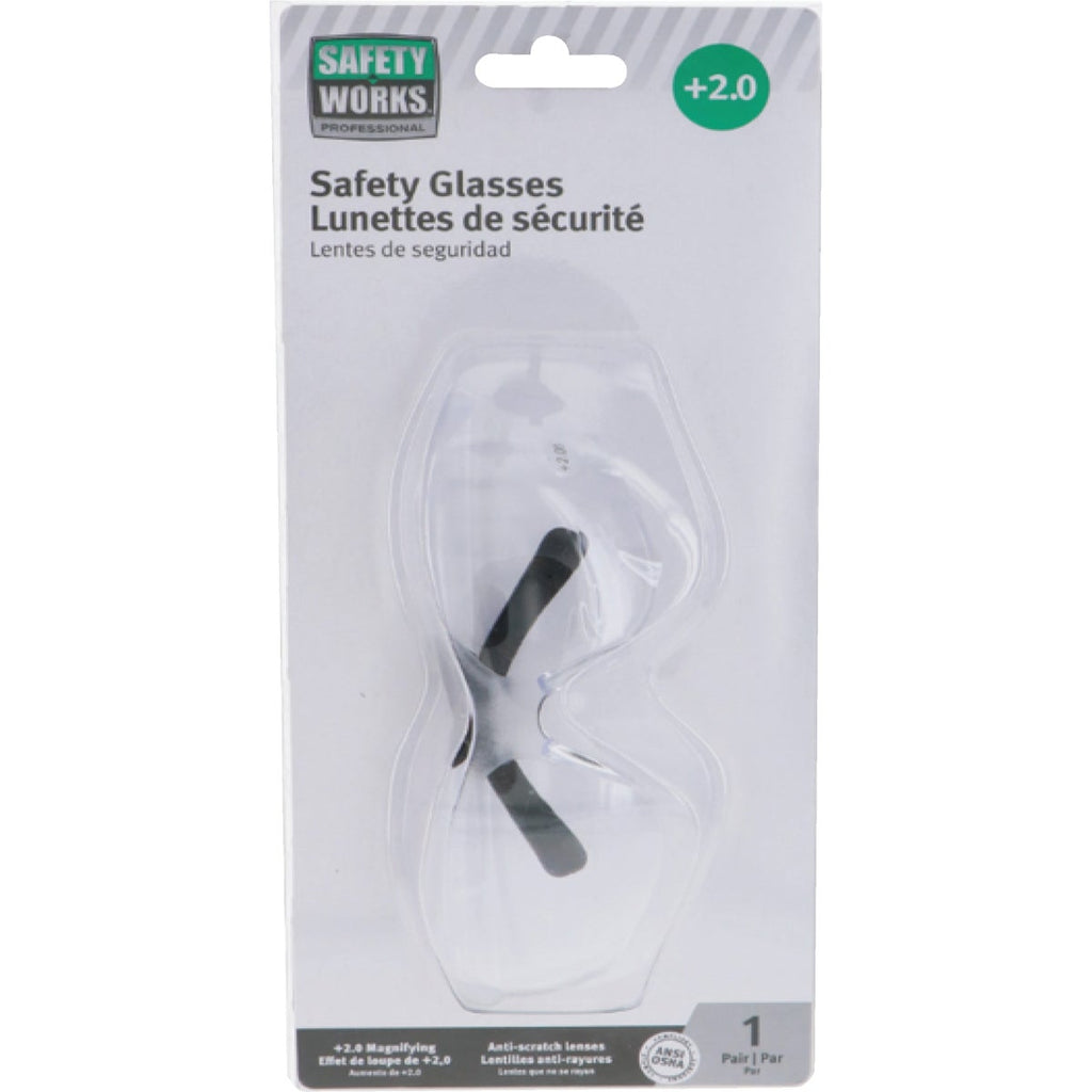 Safety Works Professional Magnifying Bifocal Black Frame Safety Glasses with Anti-Fog Clear Lenses
