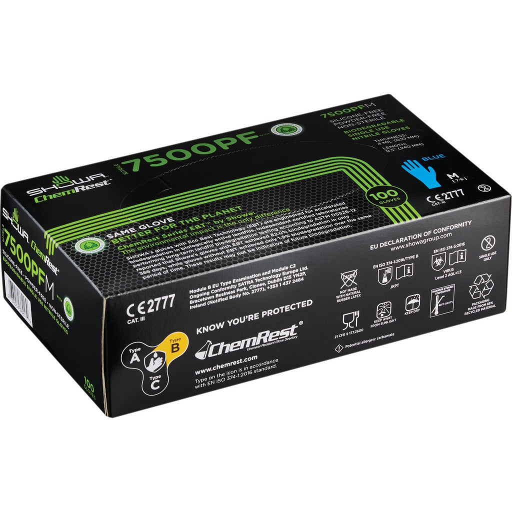 Showa Medium Blue Nitrile Biodegradable Disposable Gloves (100-Pack)