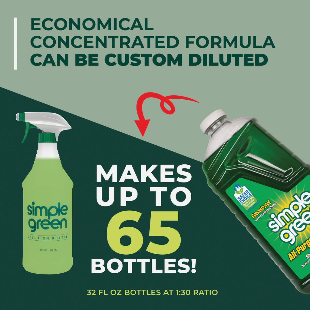 EPA Safer Choice Certified Simple Green All-Purpose Cleaner is a powerful cleaner and degreaser designed for effective and environmentally safer use on all washable surfaces. The biodegradable formula easily removes tough dirt and grime without chemicals that can harm people and the environment. Concentrated formula provides up to 30x the cleaning value. Use it full-strength for heavy messes, or easily dilute with water for daily cleaning. Removes built-up dirt, grease, food spills, ink, pet stains and other tough grime indoors and out. For use on floors, carpets, walls, countertops, appliances, furniture, fabric, tools and more. This versatile cleaner can easily replace a cabinet full of harsh cleaners, detergents, degreasers and laundry pre-soaks, making clean-up simple and safer. Leaves behind a fresh sassafras scent. This formula is readily biodegradable per OECD 301D. Backed by our 100% money-back guarantee.
