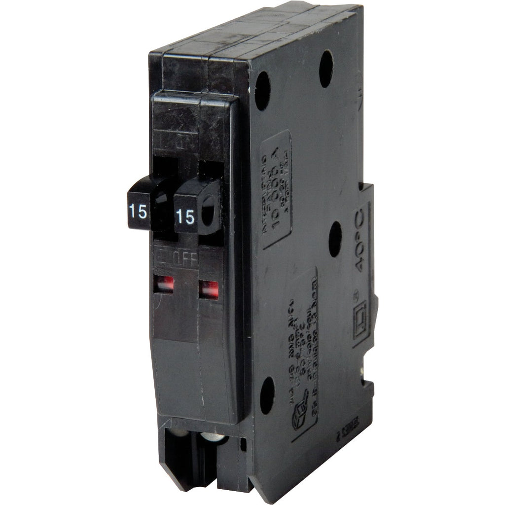 QO single-pole tandem circuit breaker. Ideal for overload and short-circuit protection of electrical systems. Offers 2 circuits in the space of 1. Compatible with QO load centers, CSED devices, and NQOD panel boards. Equipped with the exclusive Visi-Trip indicator. When breaker is tripped, the handle snaps to a midpoint position and a highly visible, red indicator easily identifies the tripped breaker. ANSI (American National Standards Institute) certified and UL (Underwriter's Laboratories) listed is rated for 120 volt/240 volt and 10,000 AIR. For use in load centers manufactured after 1967 that are not modern QO Plug on Neutral load centers.