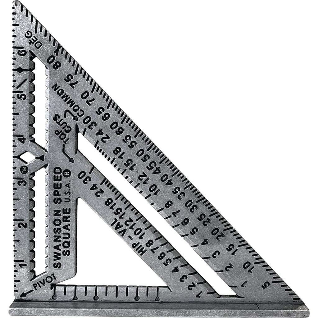 Introducing biggest evolution of the Swanson Speed Square in almost 100 years - The Speed Square PRO. This revolutionary layout tool born out of the true legacy tool, the Speed Square, is packed full of new features and has the same reliable features you have always counted on from the Swanson Speed Square making layouts even faster and easier. The diamond cut out bridge that adds support and the famous trademark Swanson Diamond Cut Out at the 3 in. mark. Beveled edges get the square closer to the working material resulting in more accurate Top Cut measurements. High-visibility, black gradations with a non-glare, matte finish for easy reading in any lighting conditions. Heavy-gauge billet aluminum alloy construction is die-cast for increased accuracy over laser-etched and extruded stamped rafter squares. Useful for determining and marking angles and making square cuts on boards.
