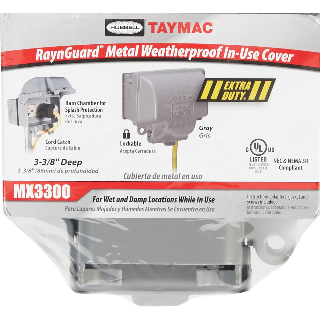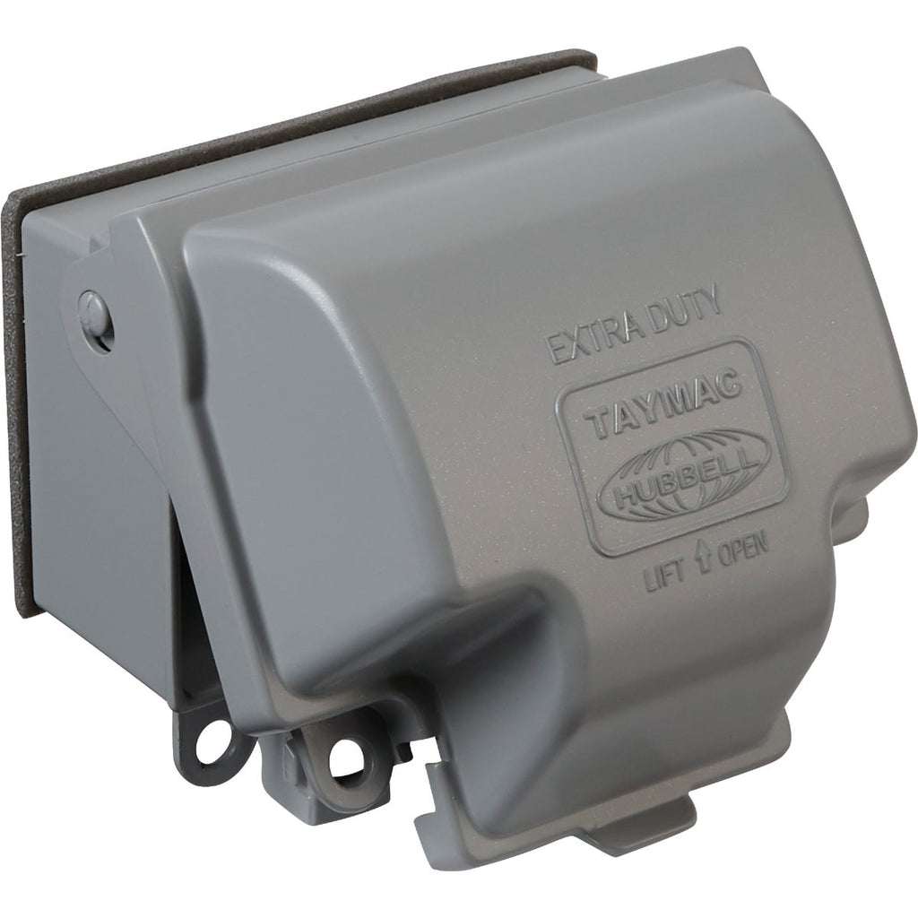 TayMac RaynGuard Extra-Duty Single Gang Horizontal Die-Cast Metal Gray In-Use Outdoor Outlet Cover